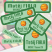 Balíček samolepiacich a nažehľovacích štítkov v jednotnom dizajne s menom a obrázkom.